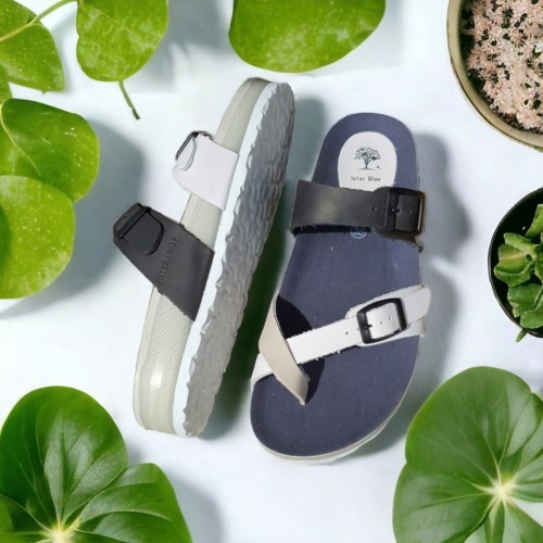 Sandalia cuñina bios anatómica tipo cangrejera, con cierre de dos hebillas en lateral externo,  de mujer y chica   en colores azul, blanco y...