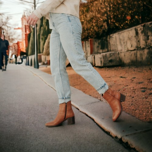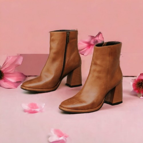 Botines de tacón medio en piel ,de mujer y chica en color cuero    de la marca  Top3shoes. Detalles pespunteados rodeando la caña de la bota ,...
