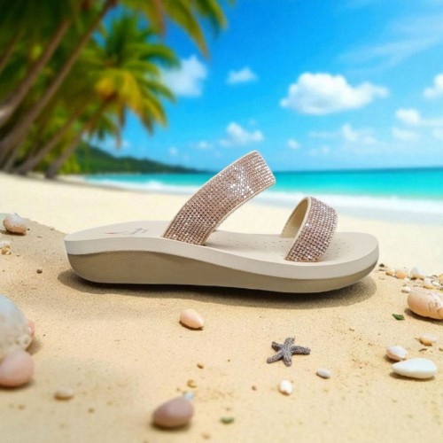 Con estas sandalias caminarás como sobre una nube, contactando con una planta acolchada, con una estética actual, muy glamurosa con sus tiras brillantes, proporcionando un aspecto muy distinguido, elegante y casual a todo el modelo.